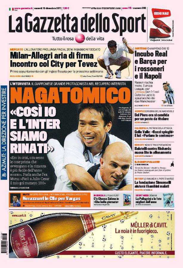 GAZZETTA NAGATOMO INTER – Sulla Gazzetta dello Sport si parla di Nagatomo che è stato il grande protagonista di questa rimonta nerazzurra.
