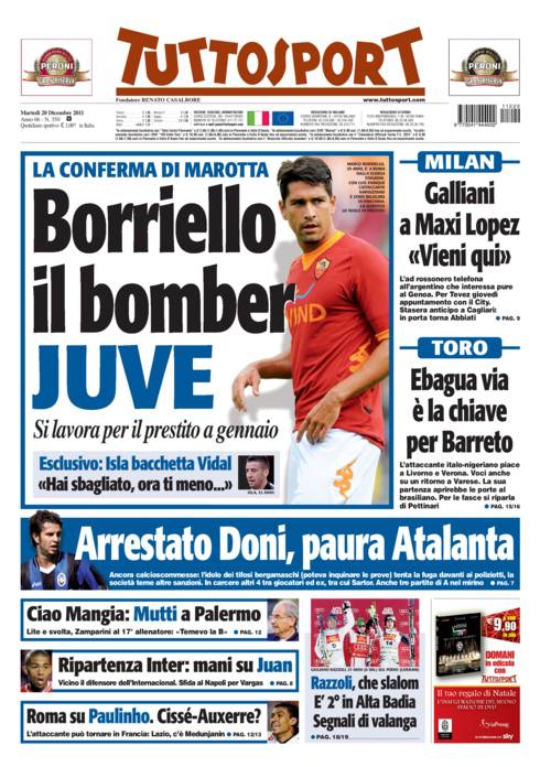 TUTTOSPORT BORRIELLO JUVENTUS – Su Tuttosport si parla di Borriello che potrebbe arrivare in prestito alla Juventus.