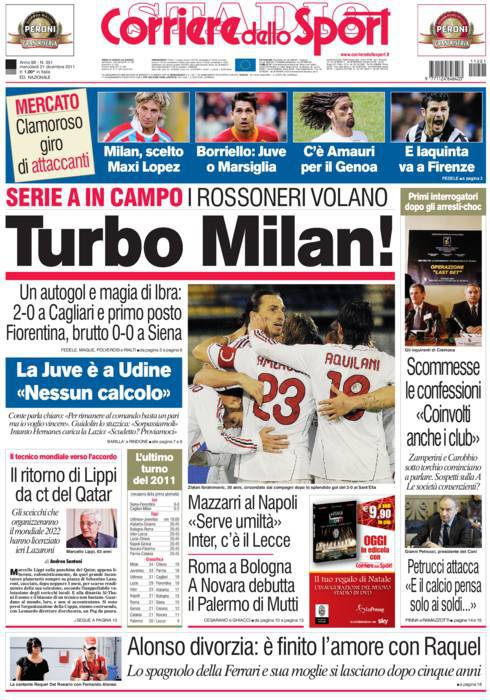 CORRIERE MILAN – Anche il Corriere dello Sport celebra il Milan che vince due a zero a Cagliari.