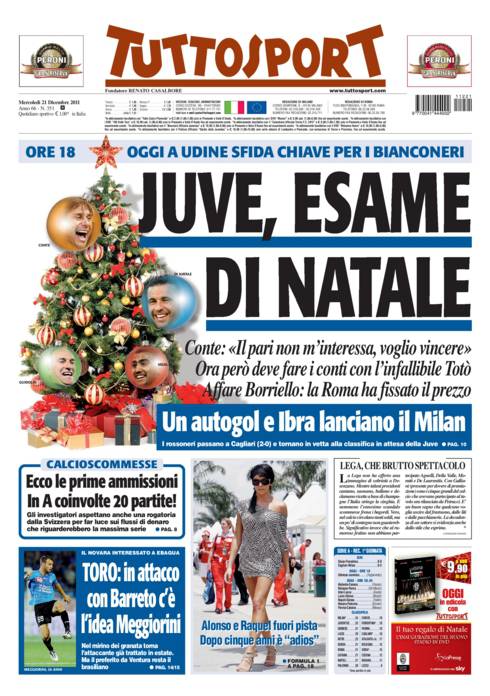 TUTTOSPORT JUVENTUS DI NATALE – Su Tuttosport si parla della Juventus che oggi alle 18 affronterà l’Udinese.
