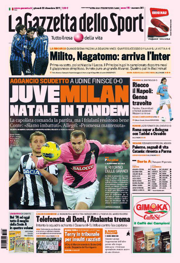 GAZZETTA JUVENTUS MILAN NATALE – Sulla Gazzetta dello Sport si parla di Milan e Juventus che si ritrovano in testa alla classifica.
