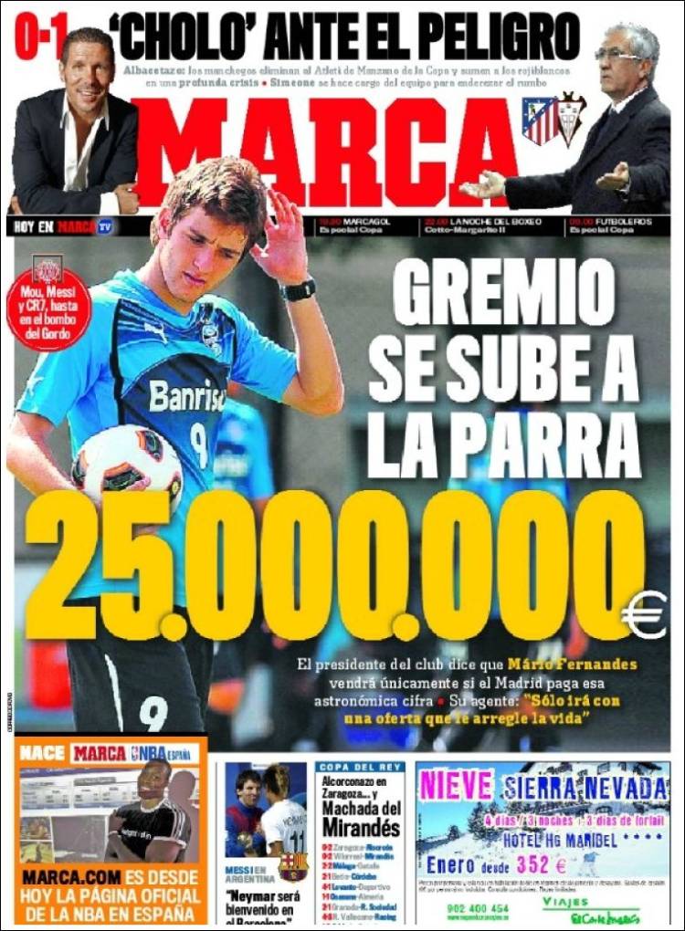 REAL MADRID MARCA GREMIO – Il Real Madrid è interessato a Mario Fernandes, giovane difensore brasiliano del Gremio. Ma i brasiliani chiedono circa 25 milioni di euro.