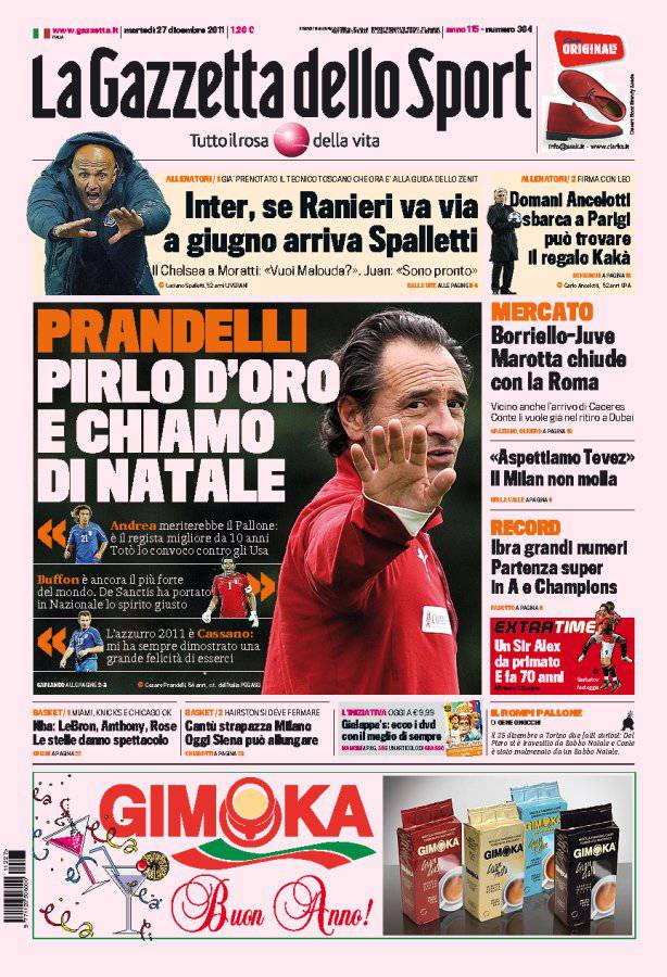 PRANDELLI GAZZETTA PIRLO DI NATALE – Sulla Gazzetta dello Sport intervista a Cesare Prandelli che parla di Andrea Pirlo e Di Natale.
