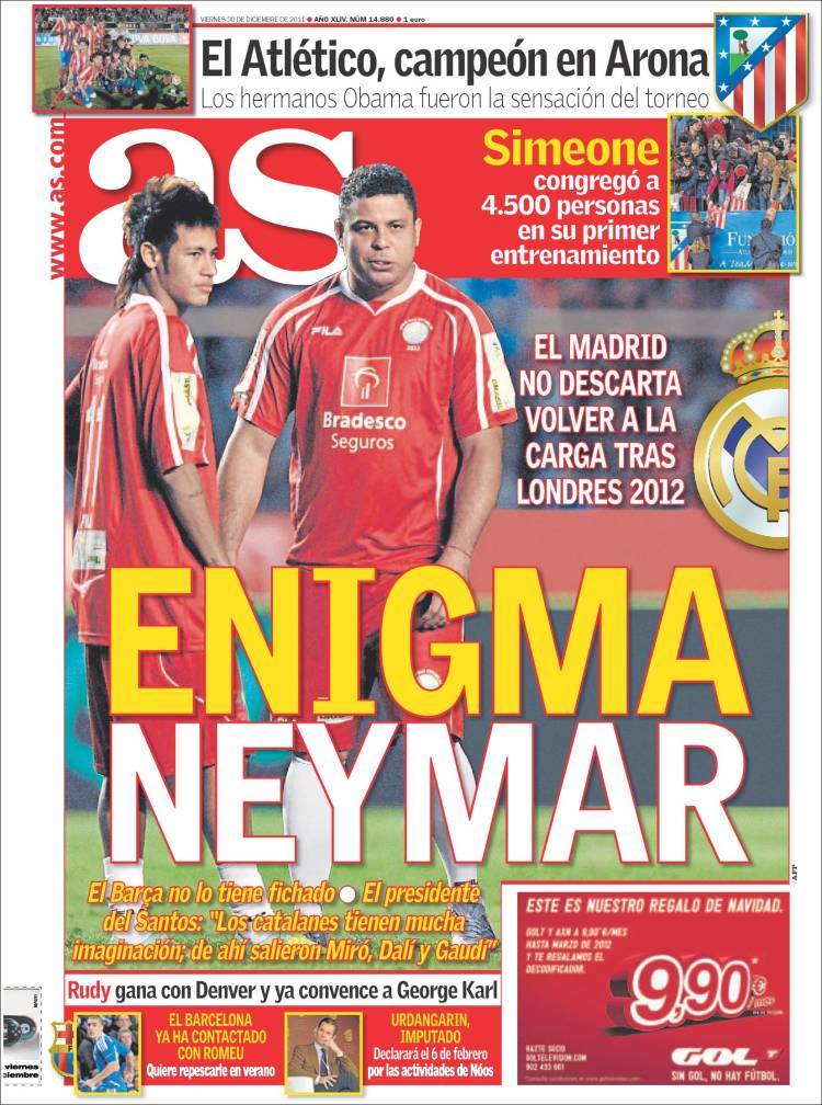 AS NEYMAR – Sul quotidiano As si parla di Neymar che non è stato ancora acquistato dal Barcellona. Il Real Madrid proverà a inserirsi.