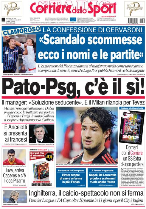 Corriere dello Sport: Pato-Psg, c’è il si! 30/12/2011 di Ruggieri CORRIERE PATO PSG – Sul Corriere dello Sport si parla di Pato che ha detto si al psg. Ora la palla passa al Milan. Claudio Ruggieri – www.calciomercatonews.com