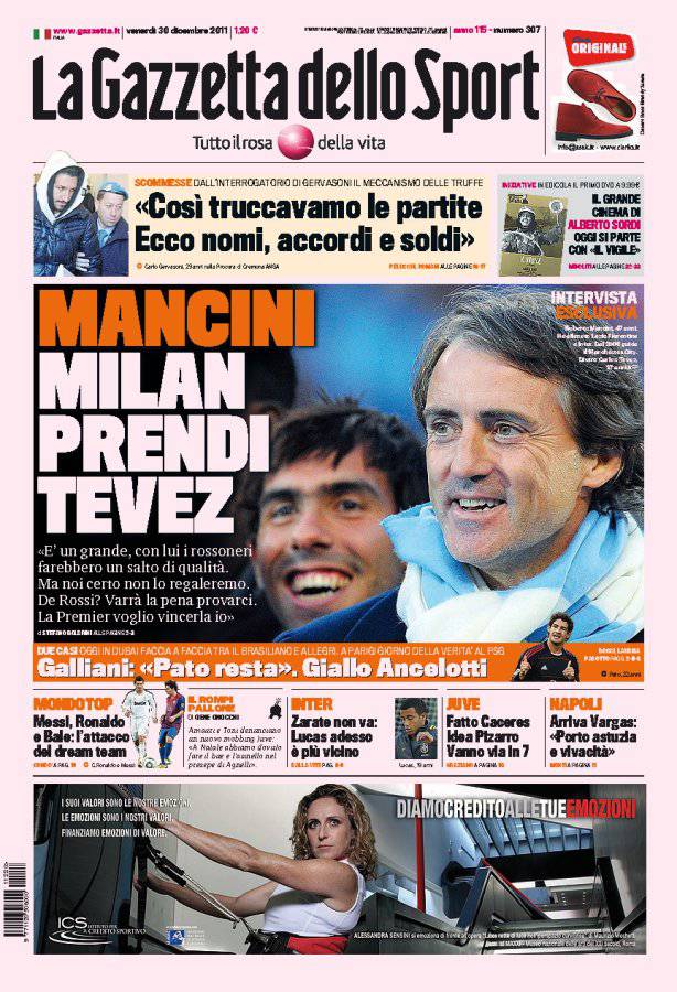 GAZZETTA MANCINI TEVEZ – Il tecnico del City Roberto Mancini invita il Milan ad acquistare Tevez.