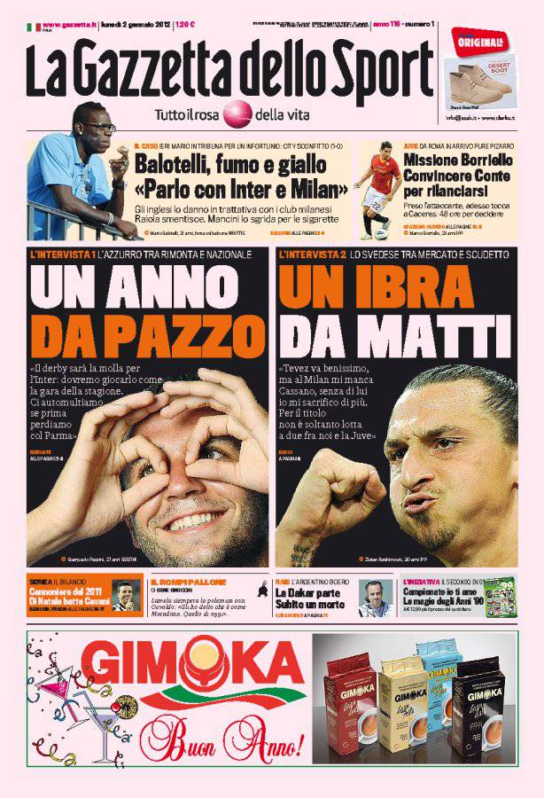GAZZETTA PAZZINI IBRA – Sulla Gazzetta dello Sport intervista esclusiva a Pazzini e Ibrahimovic.