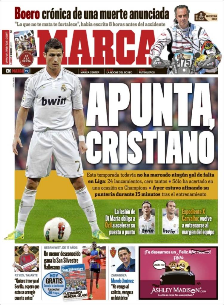 MARCA RONALDO – Sul quotidiano Marca si parla di Ronaldo che viene spronato a fare meglio sui calci di punizione.
