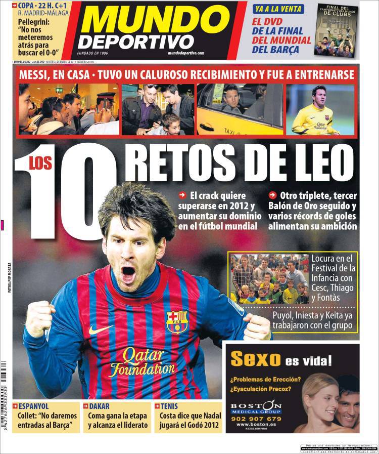 MUNDO DEPORTIVO MESSI – Sul quotidiano Mundo Deportivo si parla di Messi che nel 2012 proverà a battere altri record.
