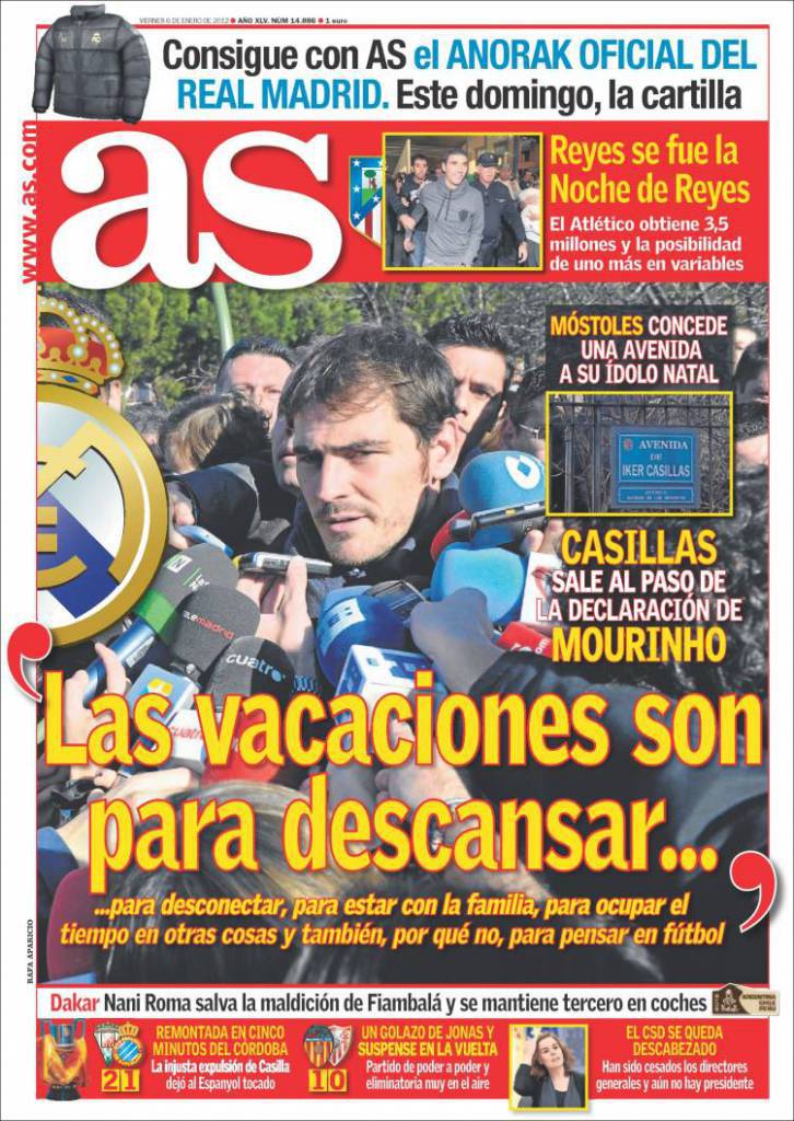AS CASILLAS – Anche il portiere del Real Madrid Casillas parla delle dichiarazioni di Mourinho riguardo alle vacanze dei giocatori del Real Madrid.