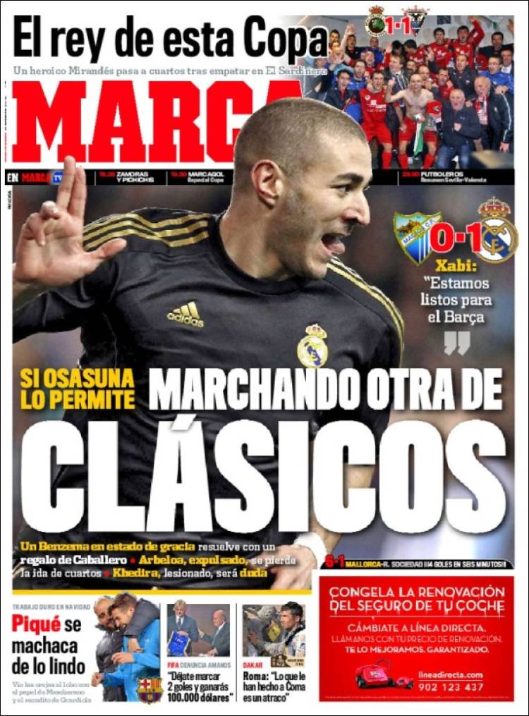 MARCA REAL MADRID – Il Real vince uno a zero a Malaga e si qualifica ai quarti di finale di Coppa del Re dove dovrebbe incontrare il Barcellona.
