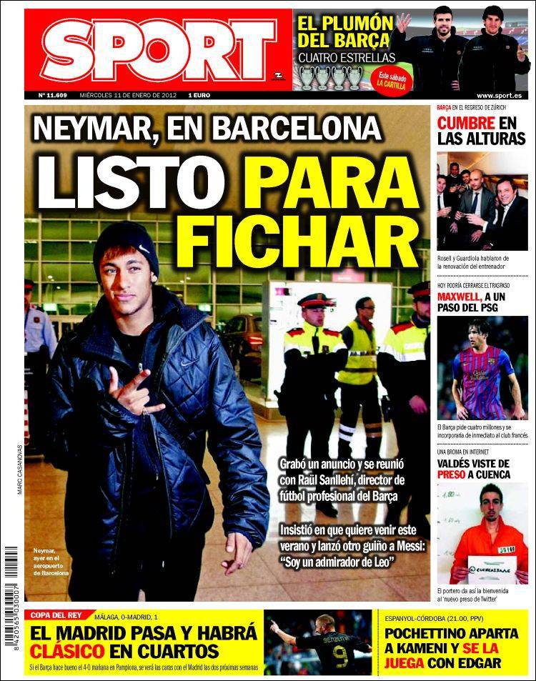 SPORT BARCELLONA NEYMAR – Il talento del Santos è a Barcellona ed è pronto a firmare il contratto con il Barcellona.