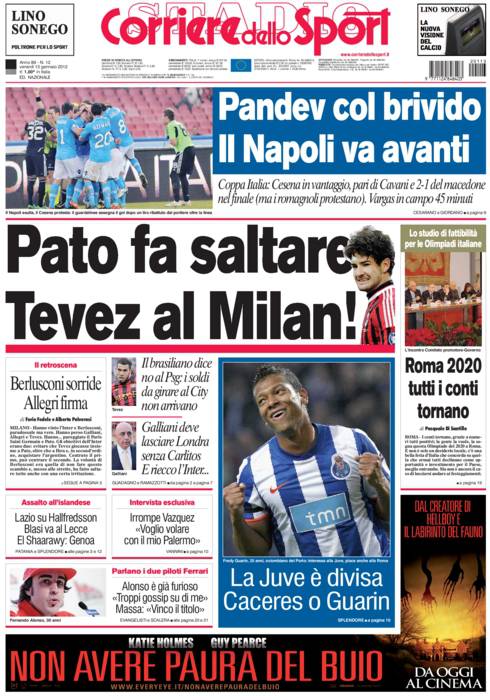 CORRIERE PATO TEVEZ MILAN – Anche il Corriere dello Sport parla di Pato che ha fatto saltare l’affare Tevez.