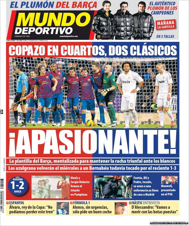 MUNDO DEPORTIVO BARCELLONA – Il quotidiano Mundo Deportivo parla già della doppia sfida nei quarti di Copa del Re tra Real Madrid e Barcellona.