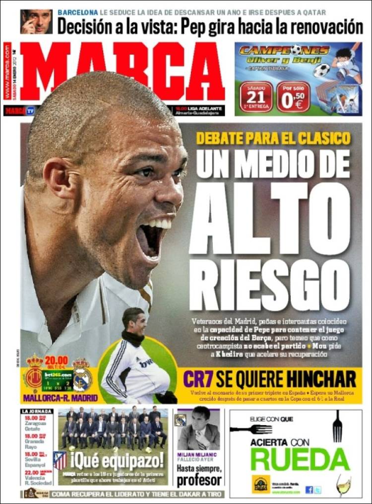 MARCA PEPE – Sul quotidiano Marca si parla dell’idea di Mourinho di schierare Pepe mediano a centrocampo contro il Barcellona in Coppa del Re.