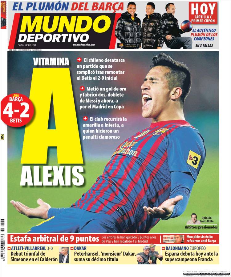 MUNDO DEPORTIVO SANCHEZ – Sul quotidiano spagnolo Mundo Deportivo si parla di Sanchez, attaccante cileno del Barcellona, che ieri è stato decisivo contro il Betis.