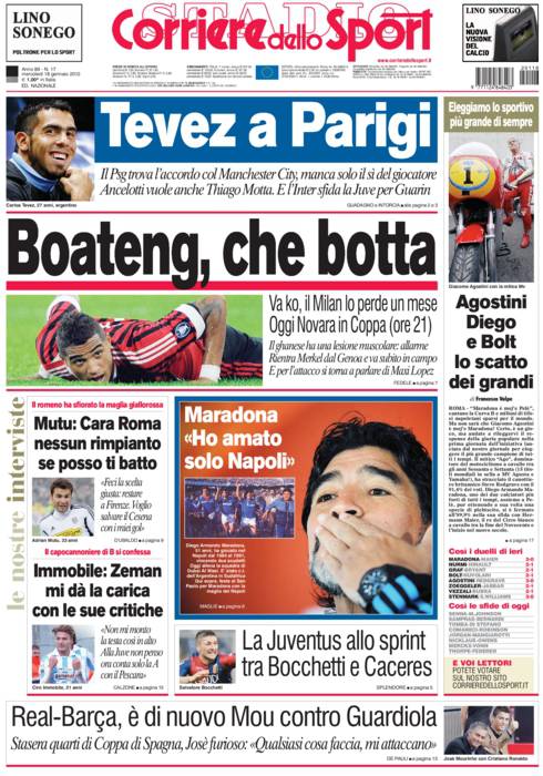 CORRIERE BOATENG – Sul Corriere dello Sport si parla di Boateng, centrocampista del Milan, che starà fuori un mese.