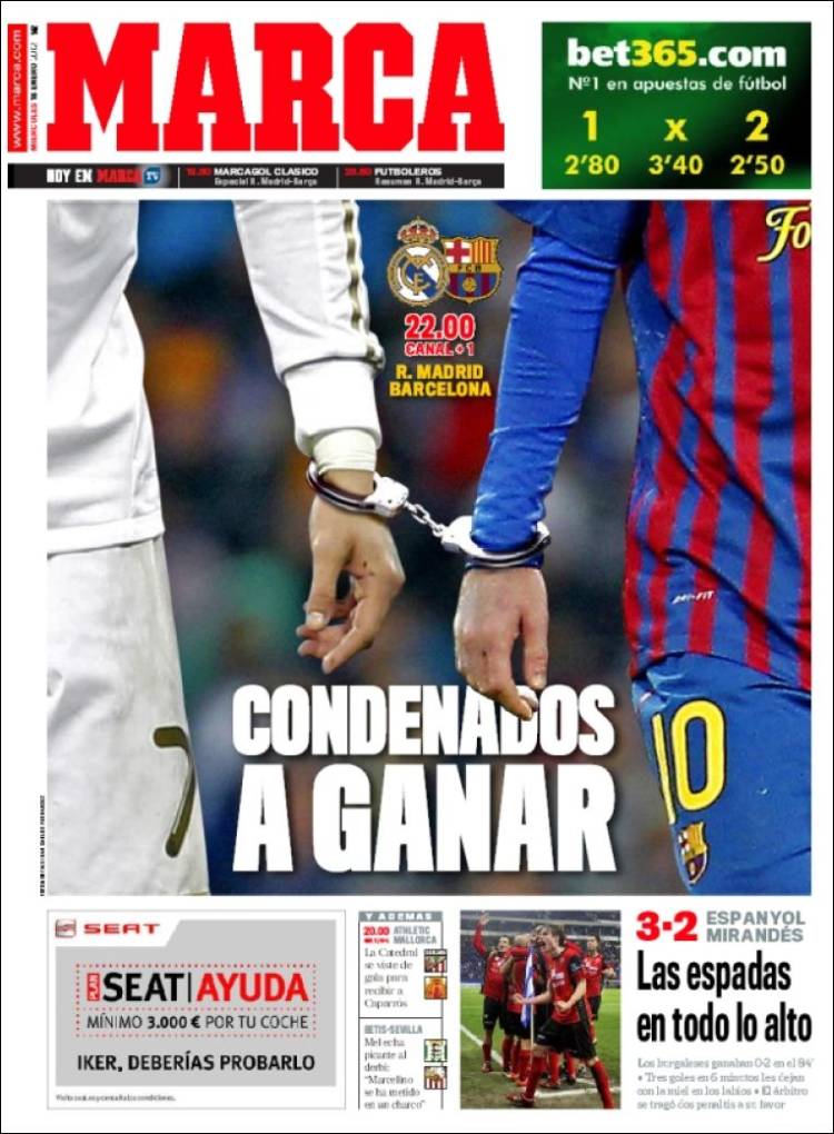 MARCA REAL MADRID BARCELLONA – Sul quotidiano spagnolo Marca si parla del Real Madrid che questa sera affronterà il Barcellona nei quarti di Coppa del Re.