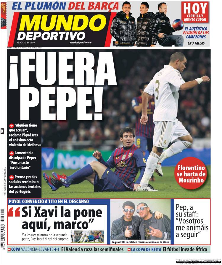 EL MUNDO DEPORTIVO – Il quotidiano catalano si schiera apertamente contro Pepe del Real, colpevole di un fallo davvero antisportivo contro Messi.