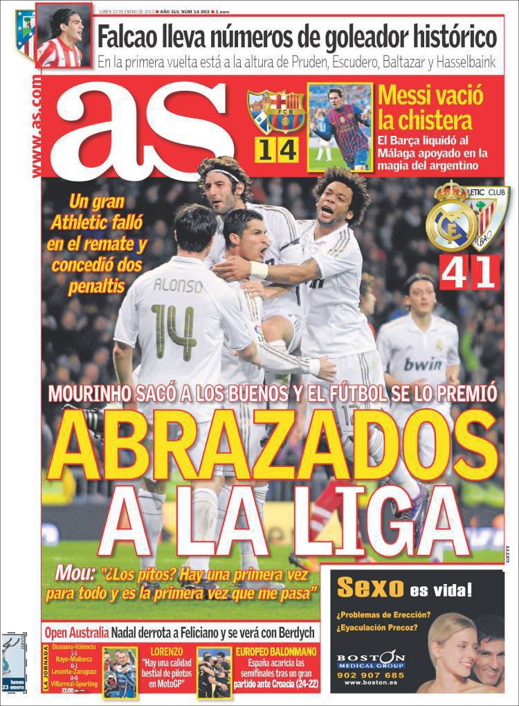 AS LIGA – Il quotidiano As parla del Real Madrid che nella Liga spagnola è sempre in testa con cinque lunghezze sul Barcellona.