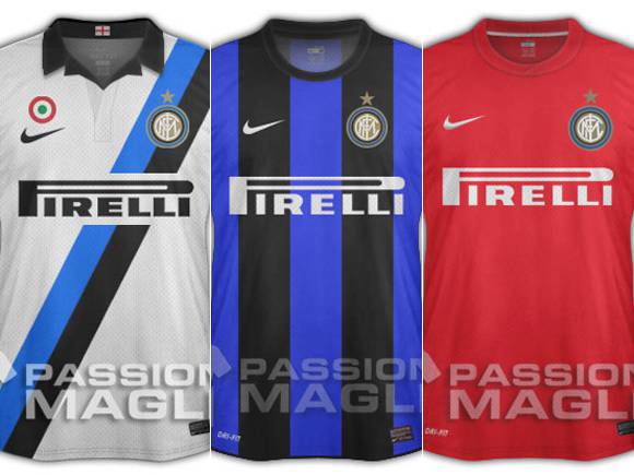 NUOVA MAGLIA INTER 2012 2013 – Novità per quanto riguarda le maglie della stagione 2012-2013 e precisamente la casacca dell’Inter. Dopo avervi riportato le indiscrezioni testuali il sito PassioneMaglie ha ricostruito graficamente le divise in questione sulla base proprio dei rumors degli ultimi giorni relativi alla prossima stagione. Al di la della prima e seconda casacca, relativamente molto simili a quella attuale e per nulla ancora definite, sorprende la terza divisa, quella di colore rosso. Un colore inedito che avrebbe scelto direttamente il presidente Massimo Moratti dopo invito della Nike. Di seguito le tre casacche: fateci sapere la vostra.