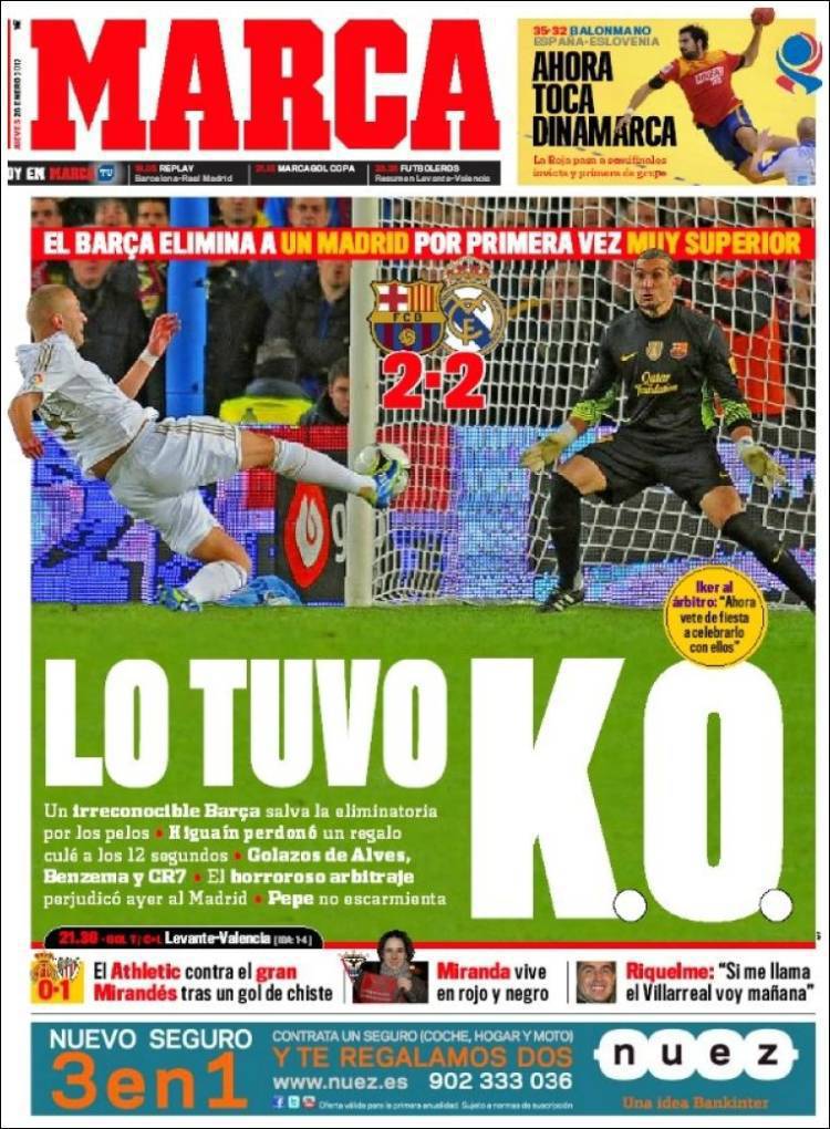 MARCA REAL MADRID – Un Real Madrid imponente sfiora la grande impresa al Camp Nou contro il Barcellona impattando sul due a due contro la formazione di Guardiola.