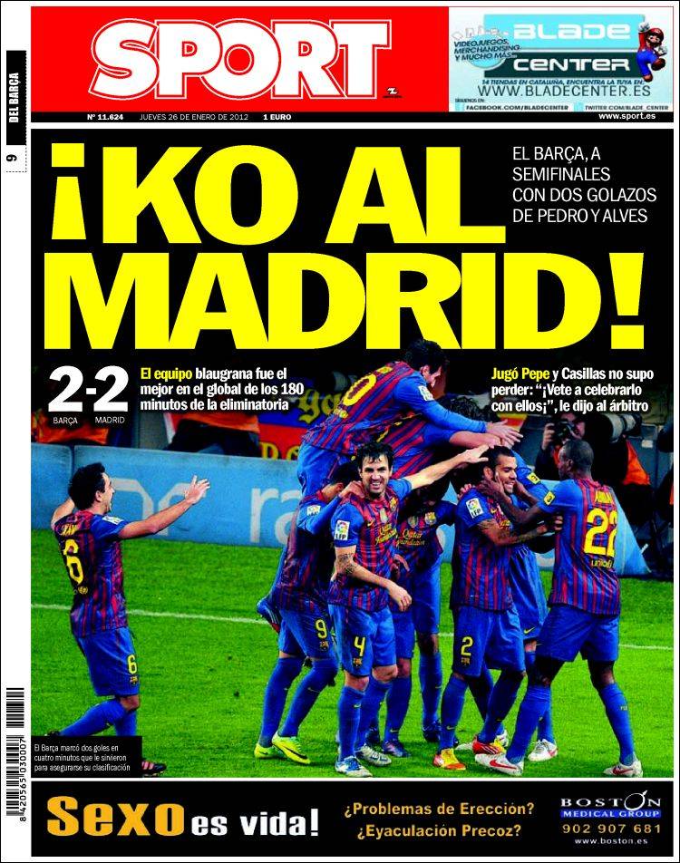 SPORT BARCELLONA – Anche l’altro quotidiano catalano Sport parla della semifinale di Coppa del Re conquistata dal Barcellona ai danni del Real Madrid.