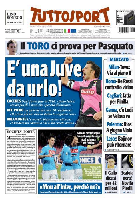 TUTTOSPORT JUVENTUS – Su Tuttosport si parla della Juventus che è protagonista in questo periodo.