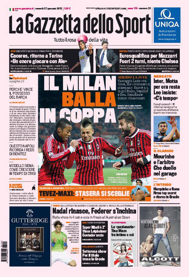 GAZZETTA MILAN – Sulla Gazzetta dello Sport si parla del Milan che vince tre a uno contro la Lazio in Coppa Italia e si qualifica alle semifinali dove affronterà la Juventus.