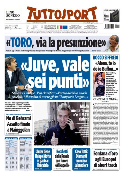 TUTTOSPORT JUVENTUS – Su Tuttosport si parla della conferenza stampa di Conte che ha parlato del match contro l’Udinese.