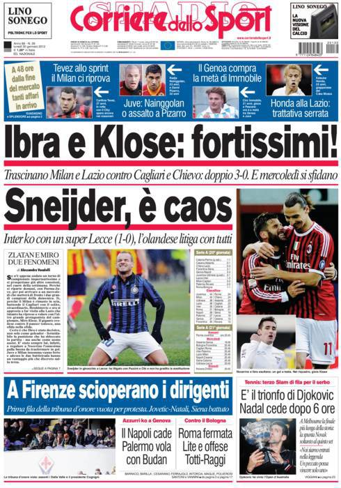 CORRIERE SNEIJDER INTER – Sul Corriere dello Sport si parla di Sneijder che ieri ha litigato con i suoi compagni durante Lecce-Inter.