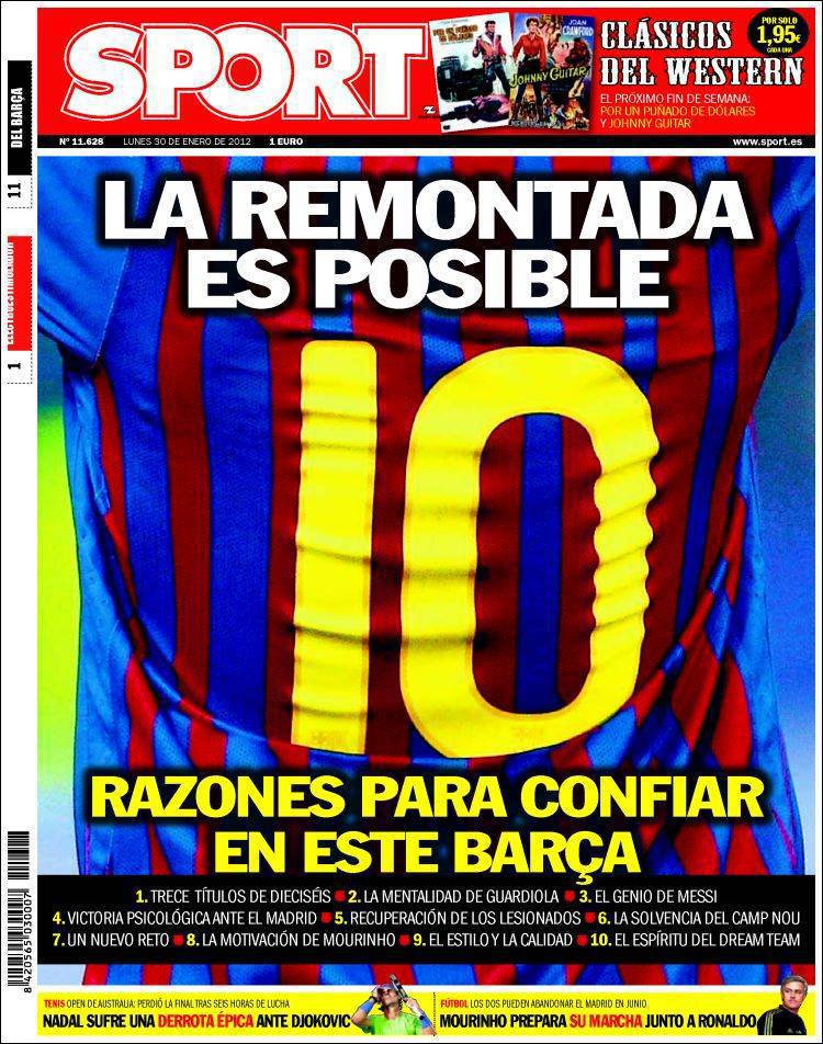 SPORT RIMONTA – Sul quotidiano Sport si parla della rimonta del Barcellona che è a meno dieci dal Real Madrid.