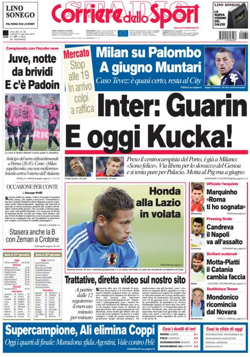 CORRIERE INTER GUARIN KUCKA – Anche il Corriere dello Sport parla del mercato Inter con gli arrivi di Guarin e Kucka.