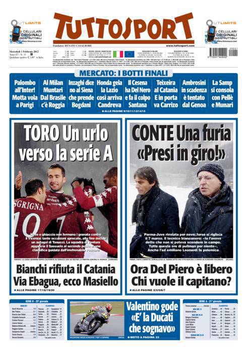 TUTTOSPORT CONTE – Su Tuttosport si parla di Conte, tecnico della Juventus, che non ha digerito il rinvio del match contro il Parma.