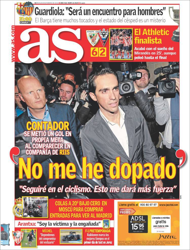 AS CONTADOR – Sul quotidiano As si parla della difesa di Contador che ha dichiarato di non essersi dopato.