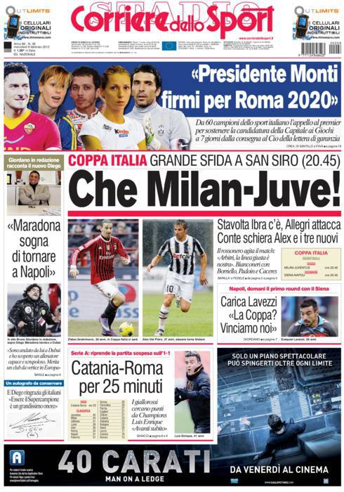 CORRIERE MILAN JUVE – Sul Corriere dello Sport si parla del match di questa sera tra Milan e Juventus valido per la semifinale d’andata di Coppa Italia.