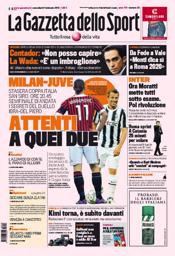 GAZZETTA MILAN JUVENTUS – Sulla Gazzetta dello Sport si parla di Milan-Juventus che questa sera si sfideranno nella semifinale d’andata di Coppa Italia.
