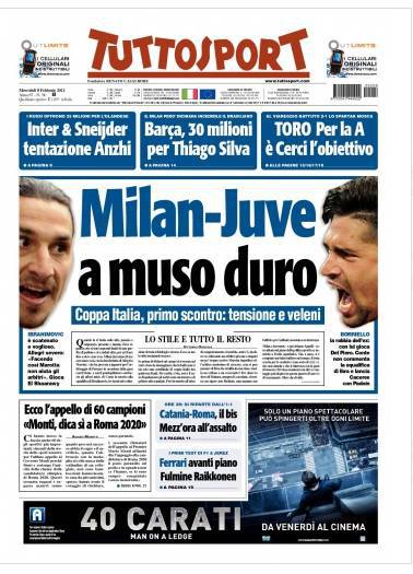 TUTTOSPORT MILAN JUVENTUS – Su Tuttosport si parla di Milan e Juventus che oggi si affronteranno nella semifinale d’andata di Coppa Italia.