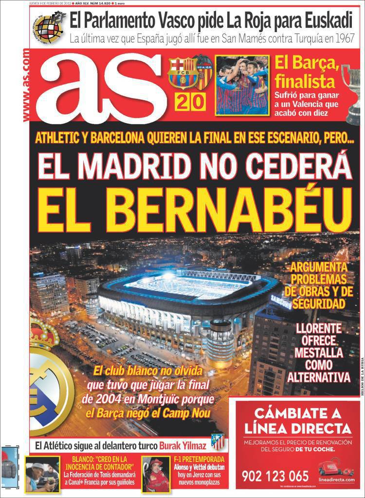 AS REAL MADRID – La finale di Coppa del Re si disputerà al Bernabeu. Ma il Real Madrid non vuole lasciare lo stadio all’Atletico Bilbao e al Barcellona.