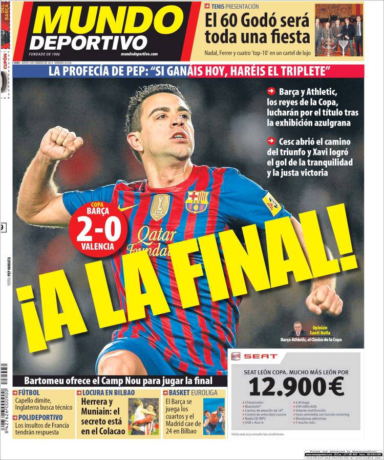 MUNDO DEPORTIVO BARCELLONA – Il Barcellona vince due a zero contro il Valencia e approda in finale di Coppa del Re.