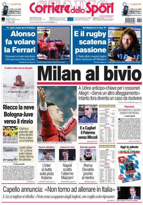 CORRIERE MILAN – Sul Corriere dello Sport si parla del Milan che quest’oggi affronterà l’Udinese in trasferta.