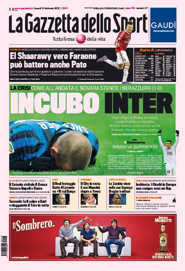 GAZZETTA INTER – Sulla Gazzetta dello Sport si parla dell’Inter che ieri ha perso uno a zero in casa contro il Novara ultimo in classifica.