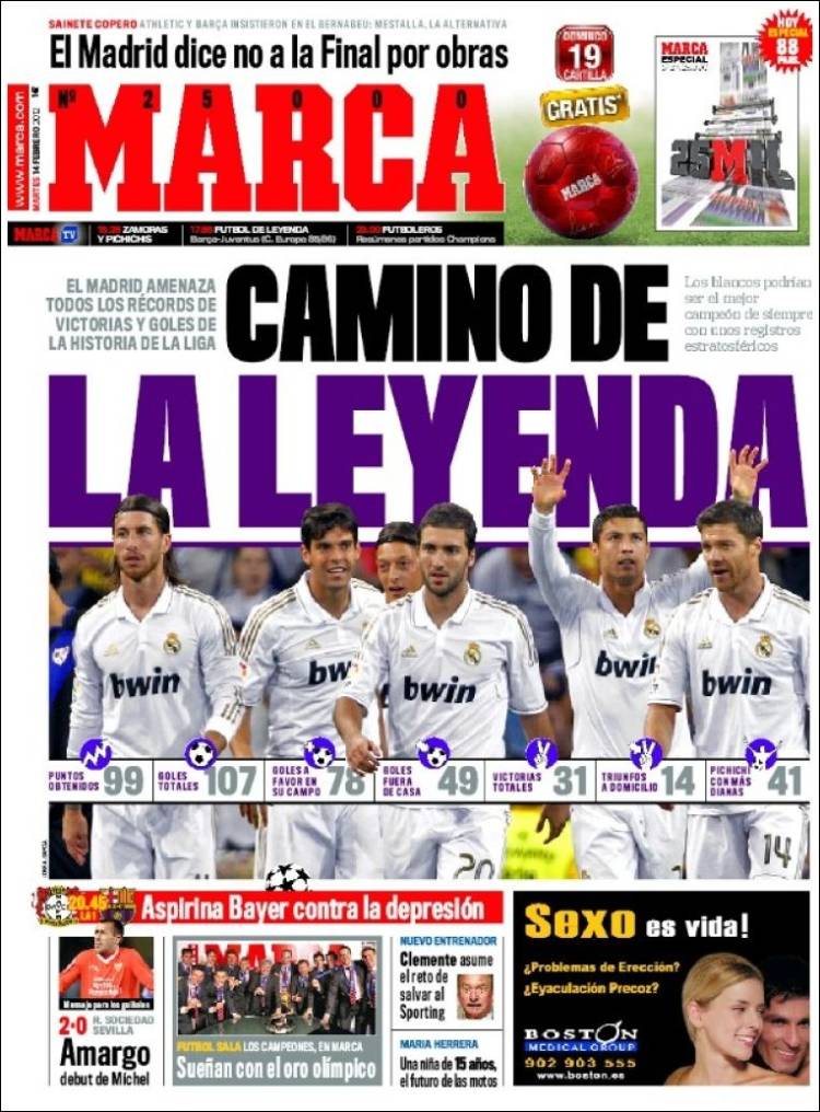 MARCA STRADA LEGGENDA – Dovesse proseguire con questi ritmi, il cammino del Real Madrid nella Liga potrebbe davvero diventare leggendario. Come riportato da Marca, i Blancos sono candidati a battere tutti i record del campionato Spagnolo.