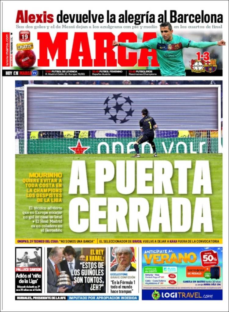 MARCA REAL MADRID – Sul quotidiano Marca si parla del Real Madrid con Mourinho che non vuole subire gol in Champions League.