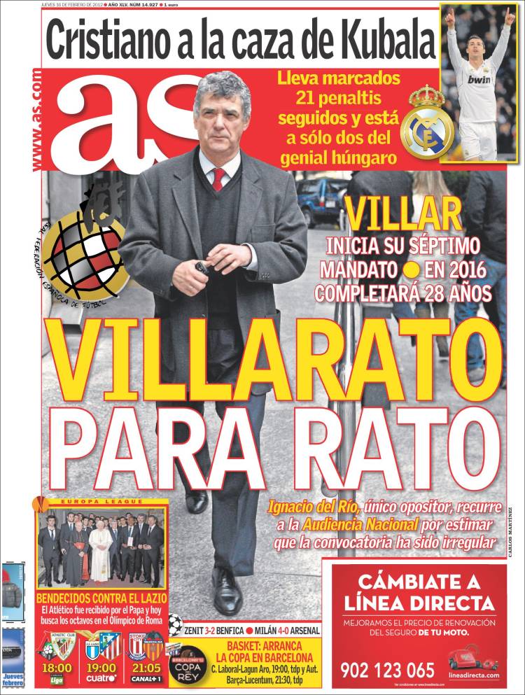 AS RONALDO KUBALA – Sul quotidiano As si parla di Ronaldo che ha messo a segno di Ronaldo che ha segnato 21 rigori consecutivi. E’ a due lunghezze da Kubala.