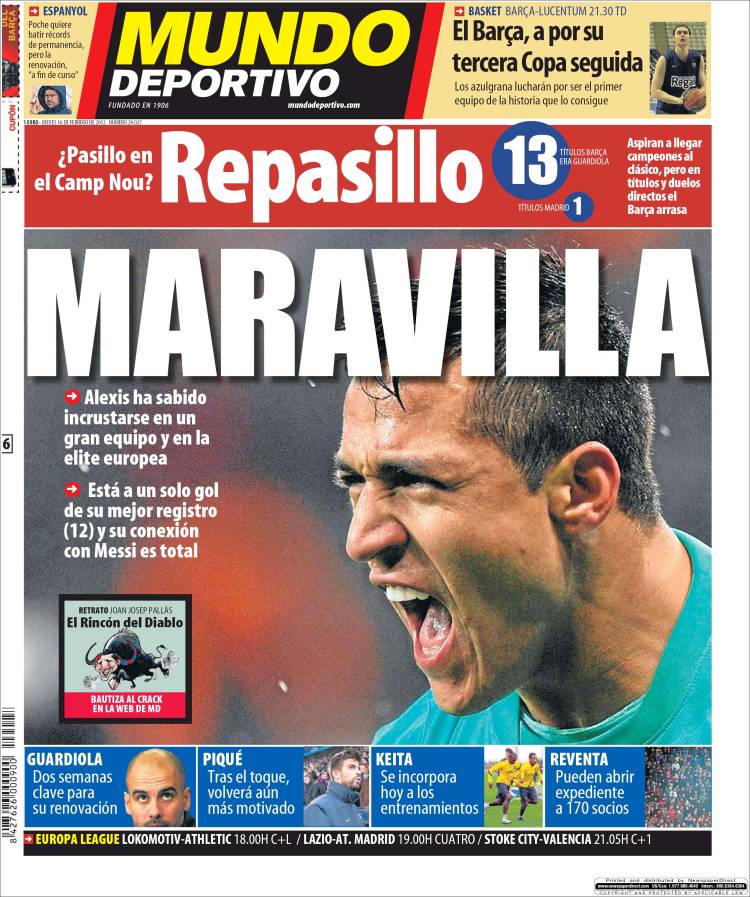 MUNDO DEPORTIVO SANCHEZ – Sul quotidiano Mundo Deportivo si parla di Sanchez che ha convinto in questa sua prima stagione al Barcellona.
