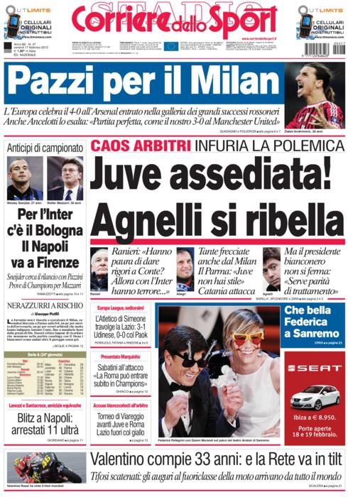 CORRIERE AGNELLI JUVENTUS – Sul Corriere dello Sport si parla delle polemiche arbitrali della Juventus che si è ribellata agli errori arbitrali.