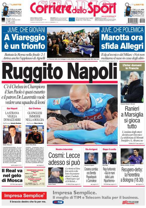 CORRIERE NAPOLI – Sul Corriere dello Sport si parla del Napoli che al San Paolo sfiderà il Chelsea.