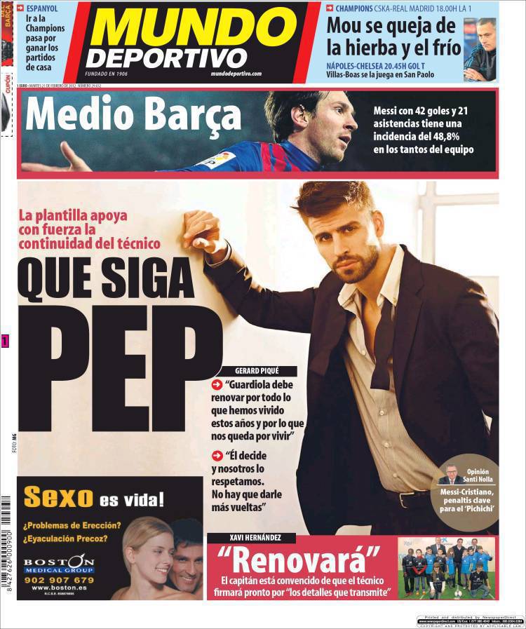 MUNDO DEPORTIVO GUARDIOLA – Il difensore del Barcellona Piquè vuole assolutamente il rinnovo di Guardiola.