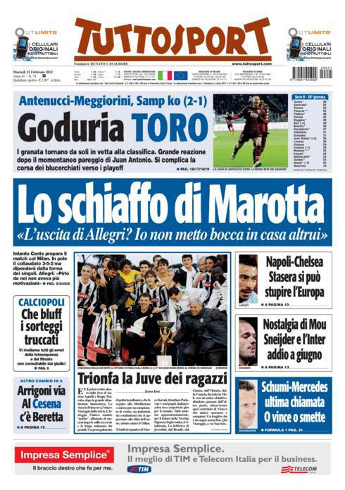 TUTTOSPORT MAROTTA – Su Tuttosport si parla di Marotta che ha risposto duramente ad Allegri.